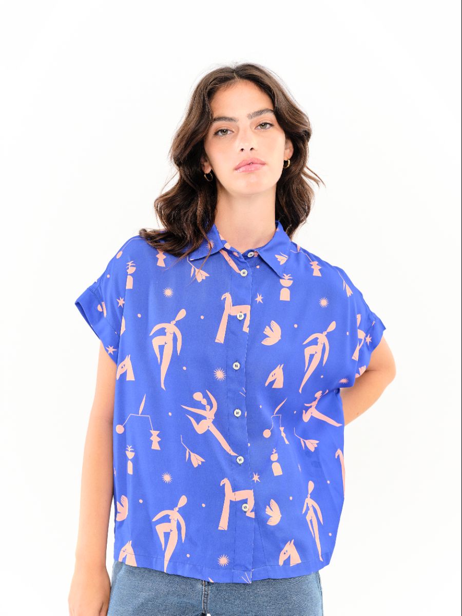 Camisa oversize manga caída y girada. La modelo lleva una talla S.