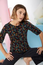 Gracias a su composición en 55% Poliéster – 45% Viscosa, esta camiseta ofrece un equilibrio perfecto entre suavidad, transpirabilidad y resistencia. La viscosa aporta frescura y caída natural, mientras que el poliéster garantiza durabilidad y fácil mantenimiento. Además, su tejido de punto proporciona flexibilidad para un ajuste cómodo y favorecedor.