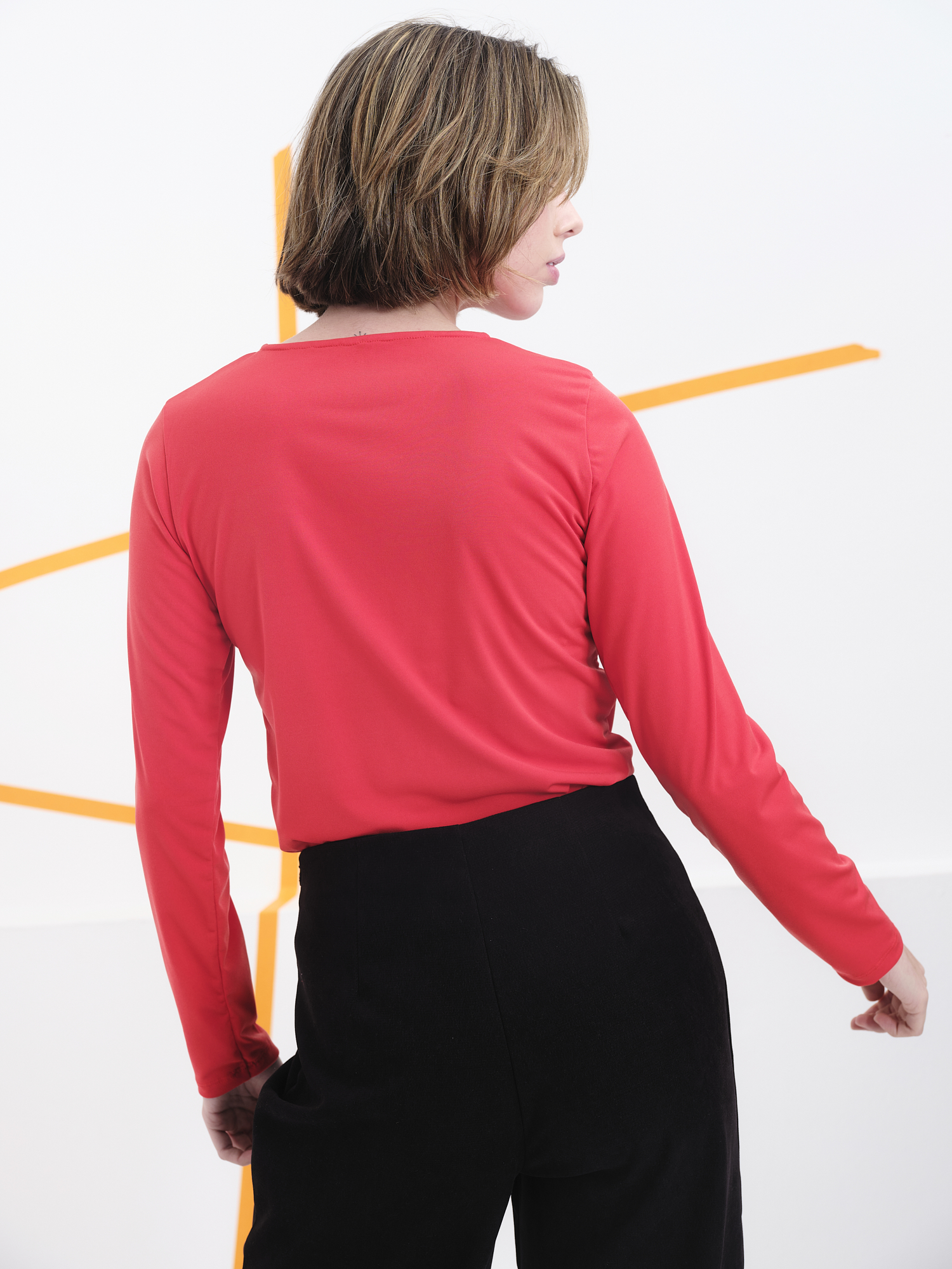 Este top de manga larga redefine la silueta clásica con un giro audaz y contemporáneo. Su diseño incorpora un corte estratégico en el pecho que juega con la geometría y la sensualidad, creando una pieza que equilibra minimalismo y provocación. El tejido elástico se adapta al cuerpo con comodidad, mientras que el cuello cerrado aporta estructura al conjunto.Perfecto para looks monocromáticos o como pieza protagonista en estilismos más atrevidos, este top es ideal para quienes buscan vestir con carácter y originalidad.