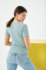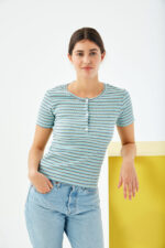La Lay Azul es una prenda esencial para quienes buscan una camiseta versátil y estilizada. Su diseño de punto canalé, su ajuste ceñido y su estampado a rayas la convierten en una opción ideal para cualquier ocasión. ¡Añádela a tu colección y disfruta de un estilo cómodo y moderno en todo momento!