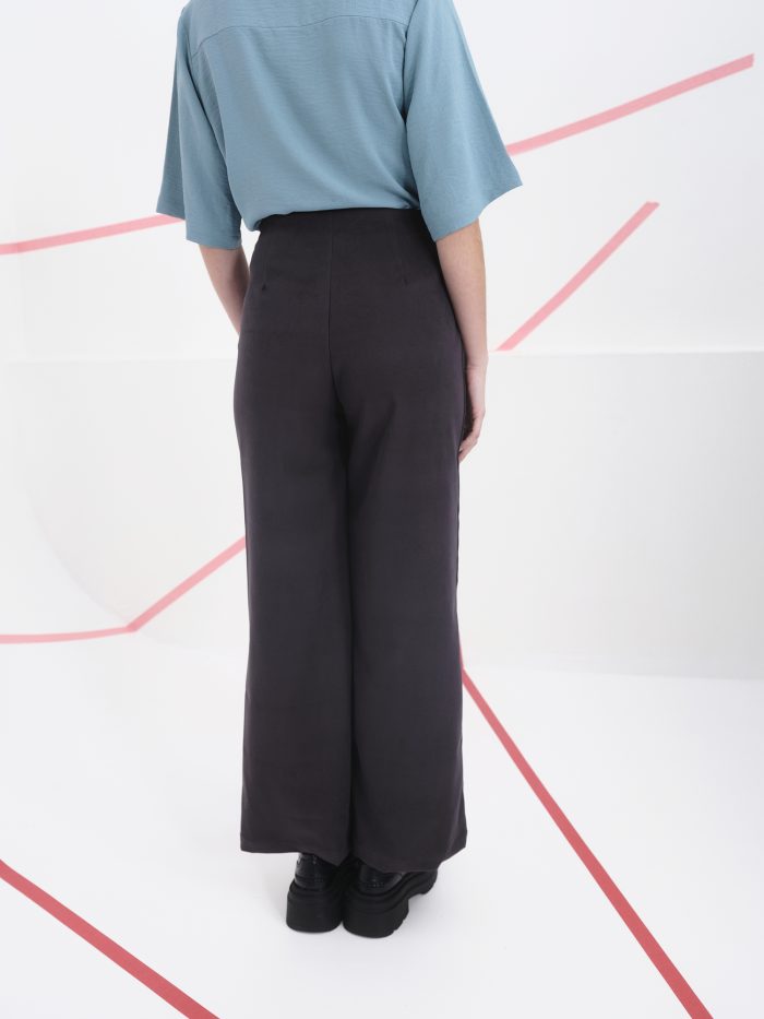 Este pantalón de tiro alto es una pieza clave para quienes buscan sofisticación con un toque contemporáneo. Su corte recto y amplio desde la cadera hasta el tobillo ofrece una silueta fluida que estiliza y aporta comodidad. Confeccionado en un tejido suave y ligeramente estructurado, este diseño combina versatilidad y carácter, ideal tanto para looks urbanos como para ocasiones más formales.