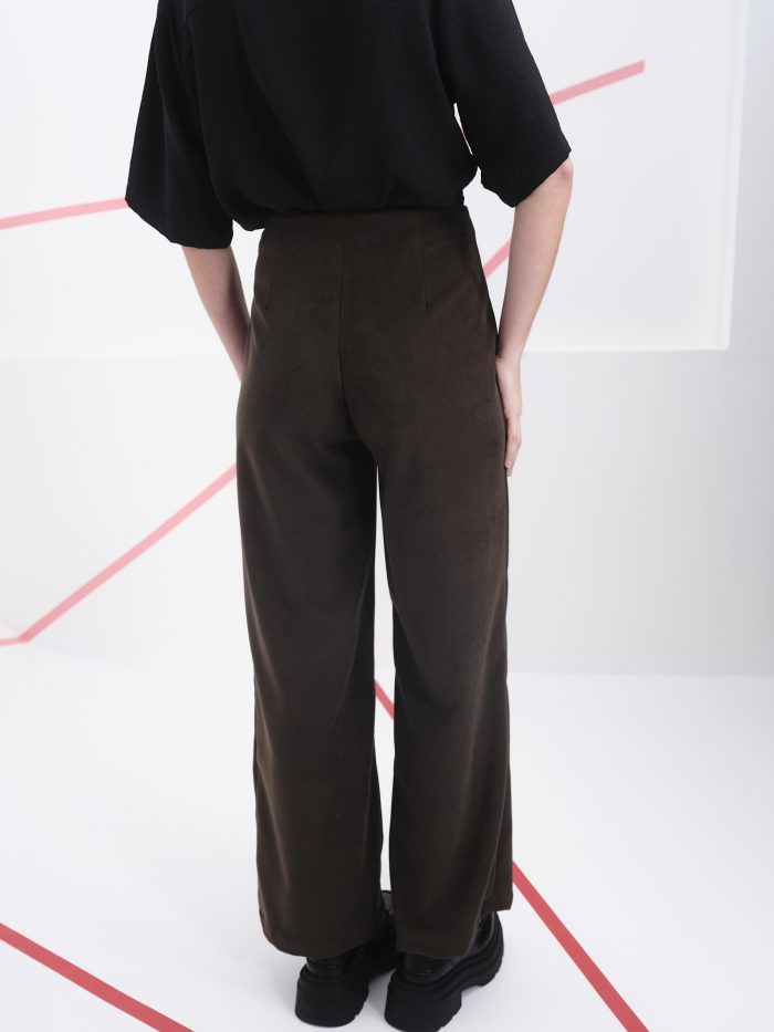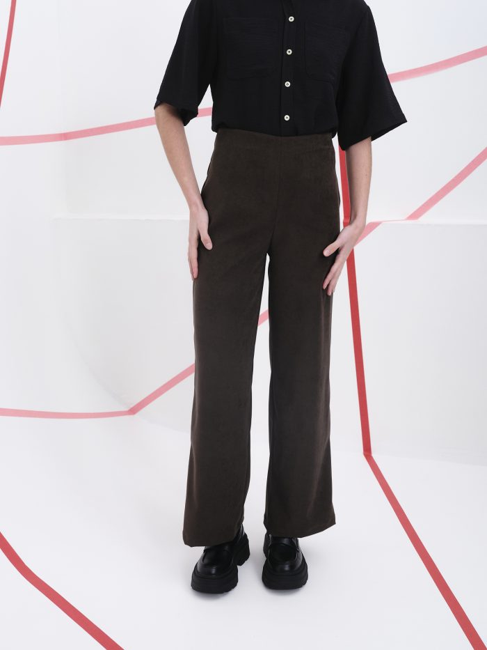 Este pantalón de tiro alto es una pieza clave para quienes buscan sofisticación con un toque contemporáneo. Su corte recto y amplio desde la cadera hasta el tobillo ofrece una silueta fluida que estiliza y aporta comodidad. Confeccionado en un tejido suave y ligeramente estructurado, este diseño combina versatilidad y carácter, ideal tanto para looks urbanos como para ocasiones más formales.