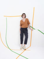 - Pantalón de tiro alto y corte fluido que estiliza la silueta con naturalidad.