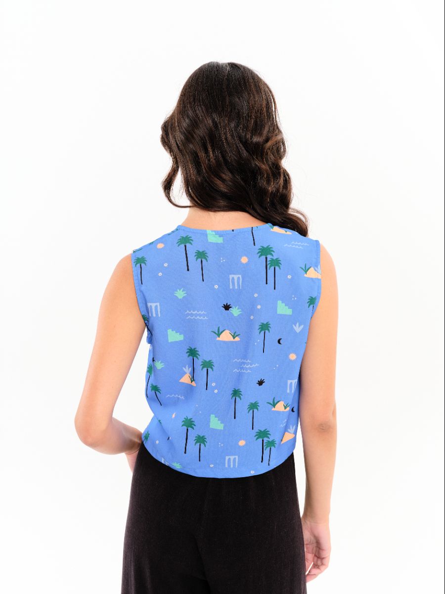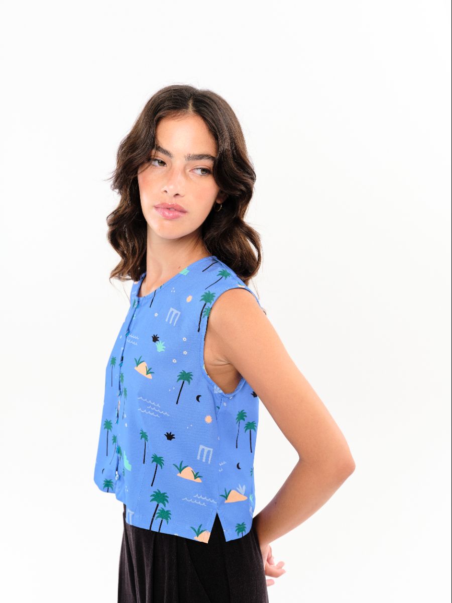 Top Abril Palmeras Azul Celeste
