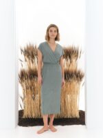 El Vestido Anela Verde es una pieza elegante y versátil, perfecta para quienes buscan un equilibrio entre estilo y comodidad. Su diseño midi con tejido de microcanalé aporta textura y fluidez, mientras que el escote cruzado realza la figura con un toque sofisticado. La goma en la cintura permite un ajuste cómodo y favorecedor, resaltando la silueta sin comprometer la movilidad. Además, las aberturas laterales añaden un detalle moderno y sutilmente sensual.