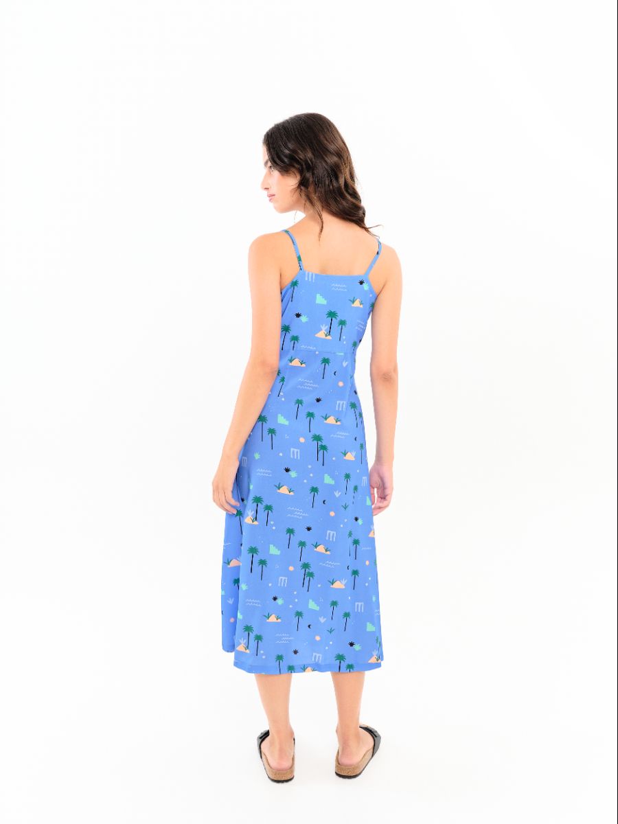 Vestido con tirantes finos regulables y largo midi. La modelo lleva una talla S.