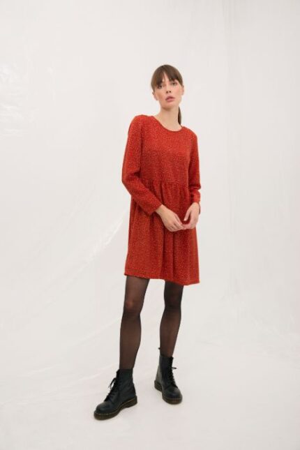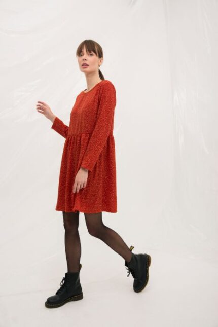 El 100% Viscosa con el que está confeccionado este vestido proporciona una textura suave y fluida, asegurando una caída natural y elegante. La viscosa es un material ligero y transpirable, ideal para mantenerse fresco y cómodo durante todo el día, además de ser fácil de mantener.
